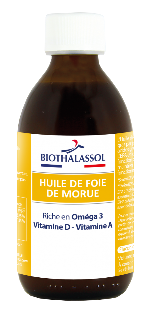 L’Huile de Foie de Morue apporte 733 mg d’acides gras par jour, mais aussi du vitamine D3 et A.