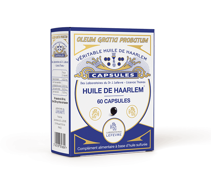 L'Huile de Haarlem 60 capsules originales du Laboratoire du Dr J. Lefèvre est une huile sulfurée obtenue à partir de trois ingrédients naturels clés.